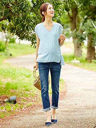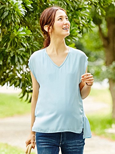 Angeliebe エンジェリーベ マタニティ トップス 授乳口 付 Vネック ジョーゼット 重ね プルオーバー 妊婦服 産前 産後 フリー サックス