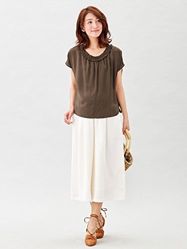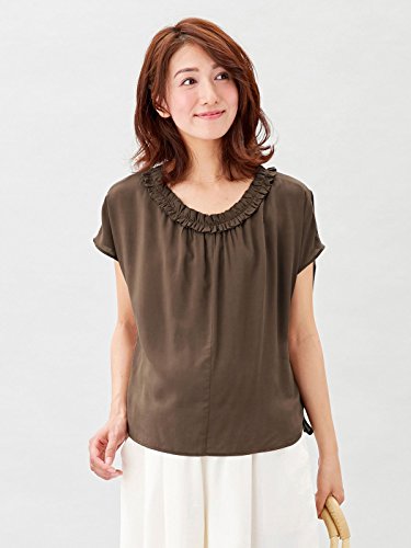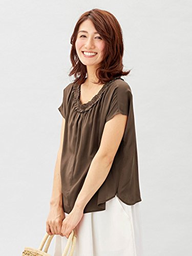 Angeliebe エンジェリーベ マタニティ トップス 授乳口 付 ギャザー ネック フレンチ スリーブ ブラウス 妊婦服 産前 産後 半袖 フリー ブラウン