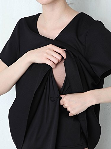 Angeliebe エンジェリーベ マタニティ 授乳口 付 Vネック ブラウス 妊婦服 産前 産後 M ~ L ブラック