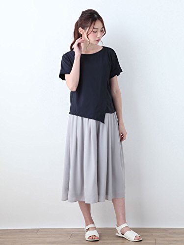 フロントがレイヤーになった今年らしいデザインのブラウスは、マタニティ期はもちろん、フロント部分をさっと開けられるので産後の授乳ウェアとしても活躍してくれる便利なアイテム。