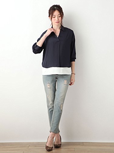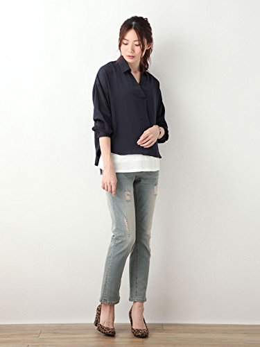 Angeliebe エンジェリーベ マタニティ トップス 授乳 しやすい ヴィンテージ サテン ブラウス 妊婦服 産前 産後 フリー ネイビー 21523 21523300