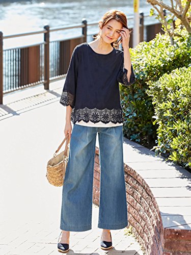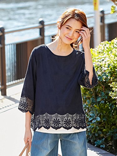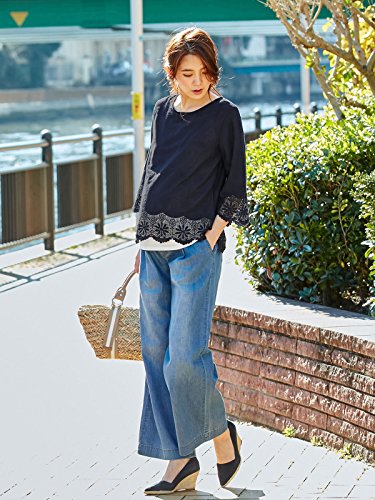 Angeliebe エンジェリーベ マタニティ 授乳口付き スカラップ 刺繍 ブラウス 妊婦服 産前 産後 フリー ネイビー 21921 21921200