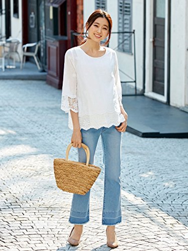 - ●【産前~産後まで使える授乳口付きスカラップ刺繍ブラウス】裾のスカラップと透け感もおしゃれで、1枚で華やかさを演出できる主役級アイテムです。両サイドにつけたコンシールファスナーは、産後の授乳機能としてだけでなく、お腹のサイズに合わせてサイドの開け具合を調節できる便利な機能です。