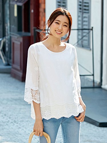 - ●【ナチュラルなボヘミアンスタイルがこれ1枚で完成! ガーリーな刺繍も◎】春夏のトレンド、ボヘミアンスタイルを先取りできる、スカラップレース刺繍がアクセントになったブラウスです。ハンドメイドのようなあたたかみのある刺繍が個性を演出。