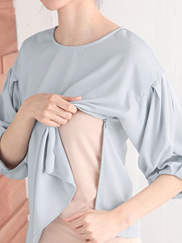 Angeliebe エンジェリーベ マタニティ 授乳口付き デシンタック パフスリーブ ブラウス 妊婦服 産前 産後 フリー ペール ブルー 21966 21966400