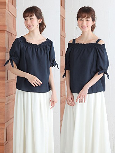 Angeliebe エンジェリーベ マタニティ 授乳口付き リボン スリーブ 3WAY ブラウス 妊婦服 (a.i.n) 産前 産後 半袖 M ネイビー 21843 21843360
