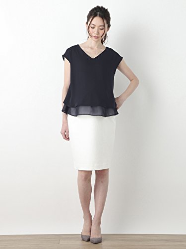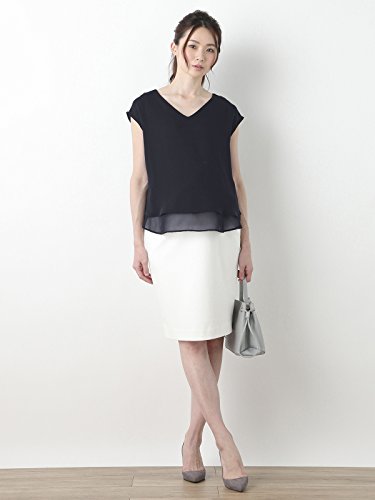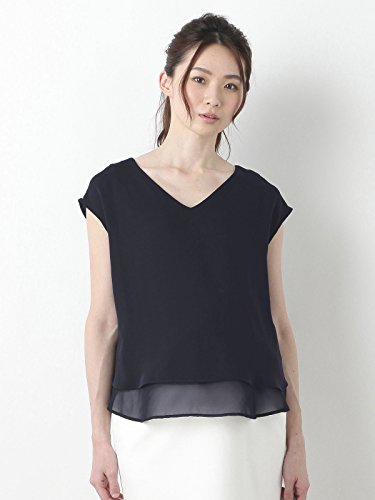 Angeliebe エンジェリーベ マタニティ 授乳口付き Vネック エステル ジョーゼット × シフォン トップス 妊婦服 (LOVE MIC) 産前 産後 半袖 M ネイビー 21872 21872260