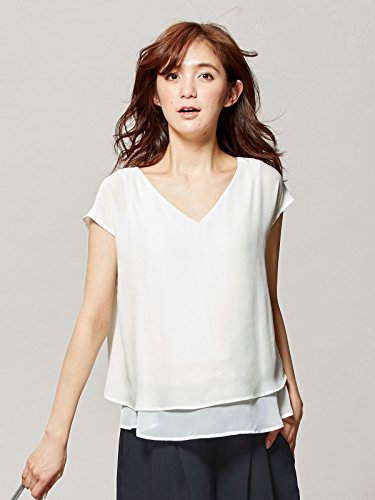 Angeliebe エンジェリーベ マタニティ 授乳口付き Vネック エステル ジョーゼット × シフォン トップス 妊婦服 (LOVE MIC) 産前 産後 半袖 M ホワイト 21872 21872360