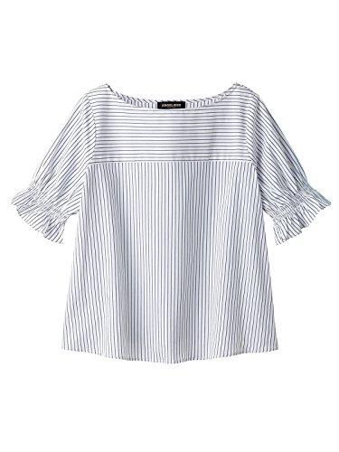 - ●【縦と横のボーダー切り替えでこなれ感アップ。キレイめガーリースタイルにぴったり!】縦と横を組み合わせたパネルボーダーデザインでこなれ感を演出。キレイめなボーダースタイルが楽しめるプルオーバーブラウスです。クラス感のあるブロード素材でキレイめな印象に。