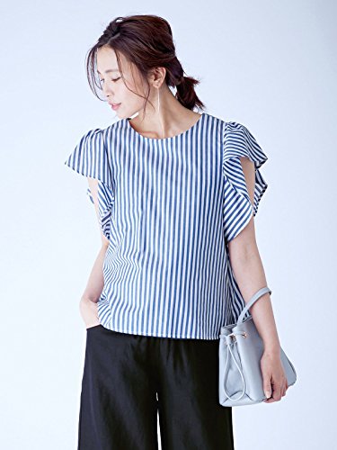 Angeliebe エンジェリーベ マタニティ 授乳口付き フレアスリーブ ブラウス 妊婦服 産前 産後 M~L ネイビー ストライプ 21969 21969502