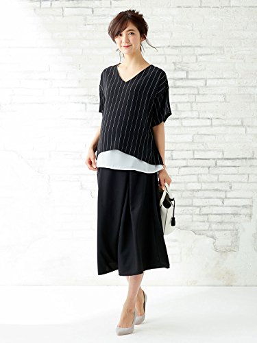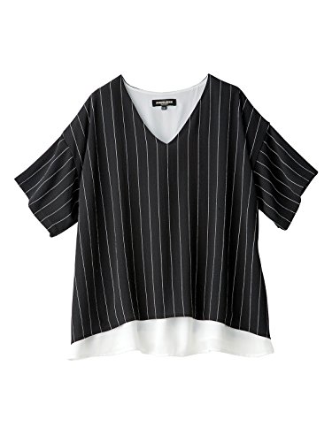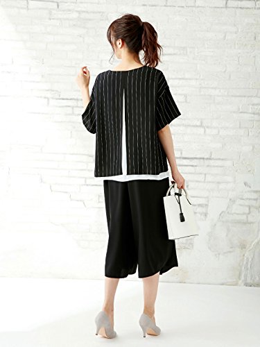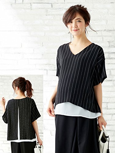 Angeliebe エンジェリーベ マタニティ 授乳口付き Vネック レイヤード 半袖 ブラウス 妊婦服 産前 産後 M ~ L ブラック × ホワイト ストライプ 22046 22046202