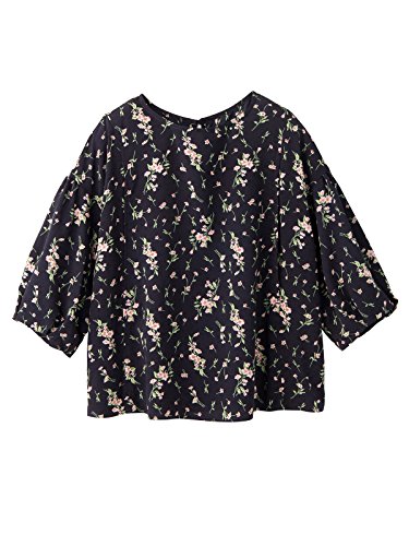 Angeliebe エンジェリーベ マタニティ 授乳口付き フラワープリント バルーンスリーブ トップス 妊婦服 産前 産後 ブラウス L ネイビー 22085 22085270