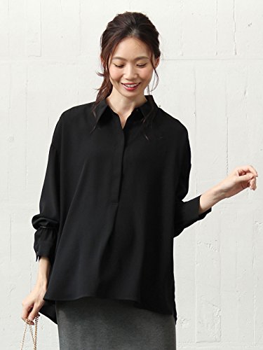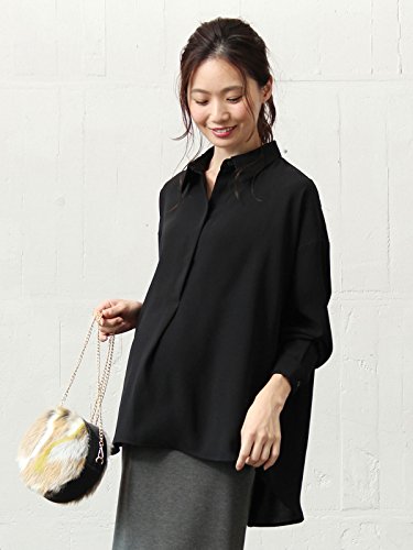 Angeliebe エンジェリーベ マタニティ 授乳しやすい ジョーゼット スキッパー ブラウス 妊婦服 産前 産後 長袖 フリー ブラック 22210 22210300