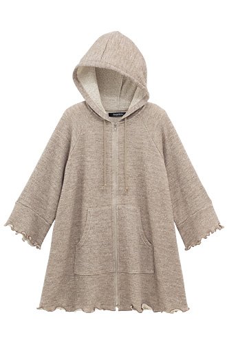 スポーティなパーカーにフレアで女性らしさをトッピング。薄手で軽いので秋の終わりから楽しめますメロウ仕立てフレアのクルクルッとした表情がチャーミング。若々しさがあふれるデザインは,仕上げも軽くなるように粗挽きニット裏毛が使われています。見た目も着心地もとても軽やか。ふわっと裾が広がったラインは産後も可愛く着こなすことができます。