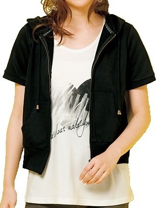 【 アウトレット 】 Angeliebe エンジェリーベ マタニティ ダブル ジップ パーカー 妊婦服 産前 産後 半袖 羽織もの M ブラック