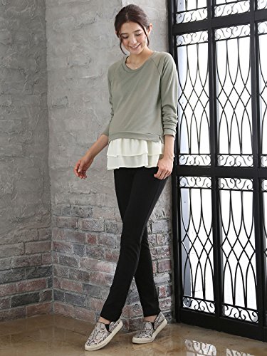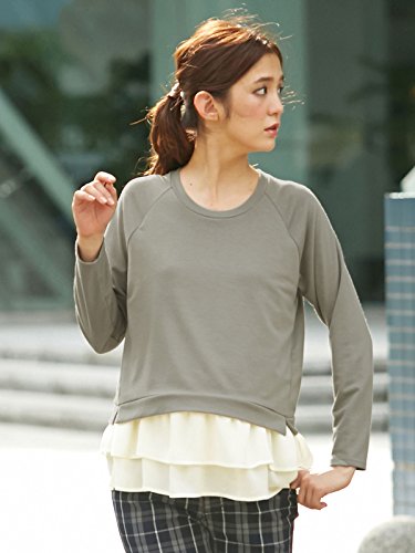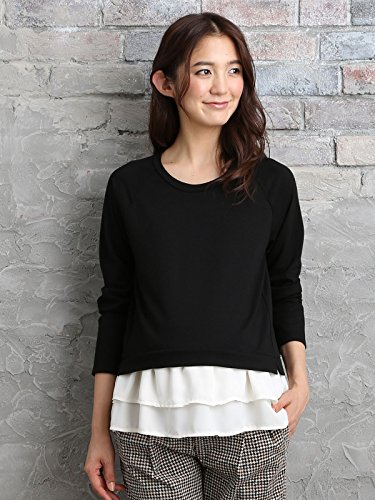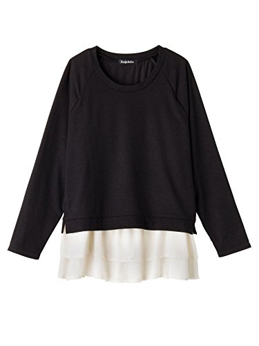 Angeliebe エンジェリーベ マタニティ 授乳口付き ミニ 裏毛 ジョーゼット ぺプラム トップス 産前 産後 授乳服 重ね着風 フリー ブラック × アイボリー 20961 20961100