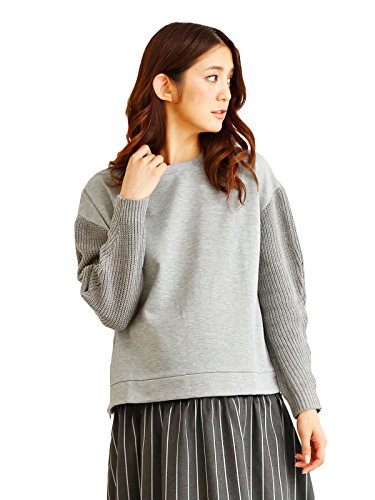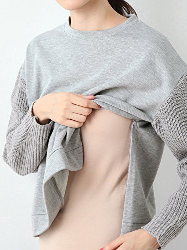 Angeliebe エンジェリーベ 授乳 口 付 袖 ニット 切り 替え 裏毛 プル オーバー フリー 杢 グレー