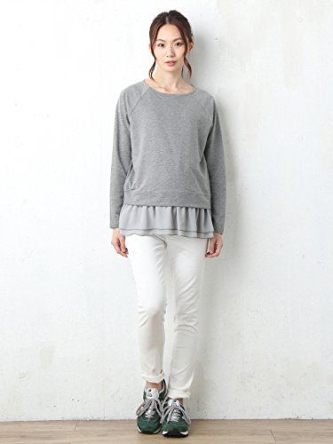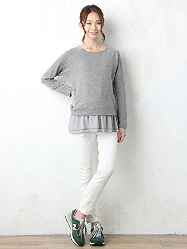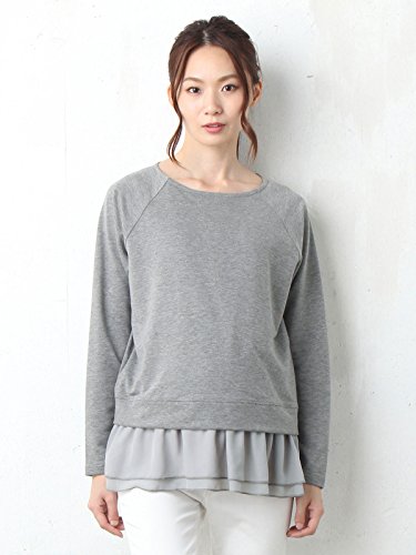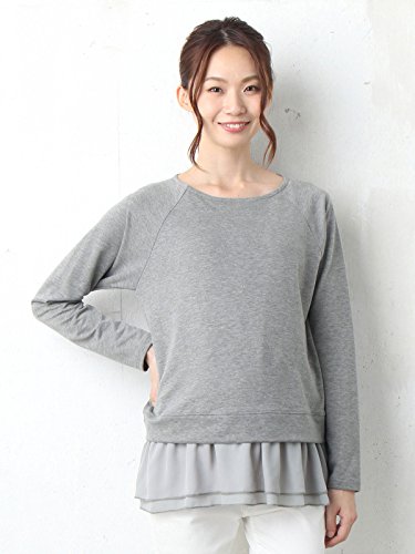 Angeliebe エンジェリーベ 授乳 口 付 裏毛 × シフォン レイヤー トップス フリー 杢 グレー