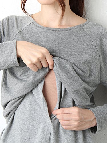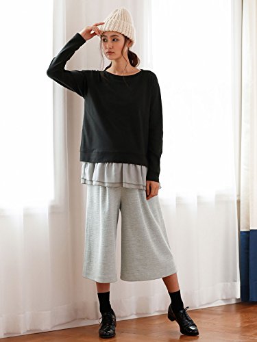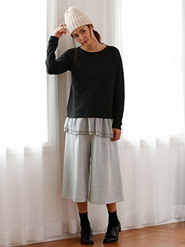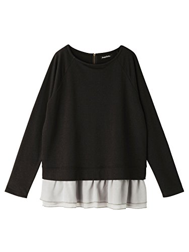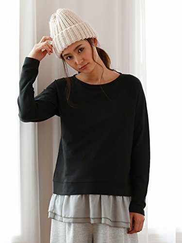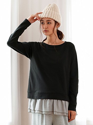 Angeliebe エンジェリーベ マタニティ 授乳口付き 裏毛 × シフォン レイヤー トップス 妊婦服 産前 産後 重ね着風 フリー ブラック 21147 21147200