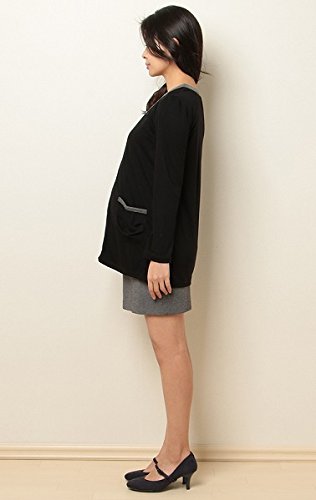 カットソー素材のベーシックカーデは、3シーズン着用できるヘビロテアイテム。サッと着脱できるので汗かきマタニティの体温調節にぴったり♪バイカラーでキリッと感を、立体的なポケットで可愛さを添えたデザインは、シャープにも甘口にもコーデ自在です。