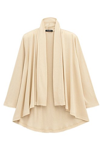 自然に流れるドレープがナチュラル&エレガンスな印象。お尻をすっぽりと隠してくれる長めの丈もうれしい。