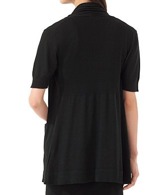 裾がダブルの袋編みのため、シルエットが落ち着き、きちんとした印象を与えてくれます。スタイルにもこだわった半袖のカーディガンは、爽やかさとフォーマルな雰囲気を演出します。
