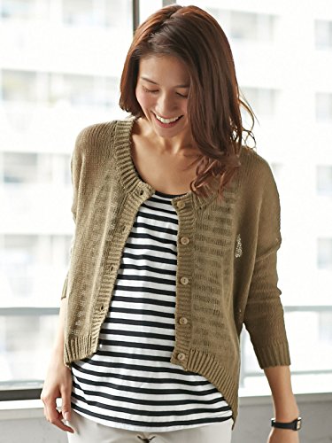 Angeliebe エンジェリーベ マタニティ 綿麻 ニット ボレロ カーディガン 妊婦服 羽織もの フリー カーキ