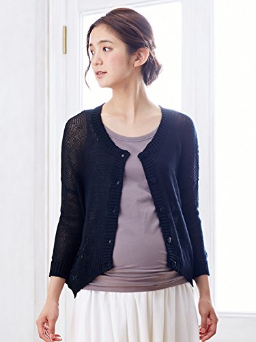 Angeliebe エンジェリーベ マタニティ 綿麻 ニット ボレロ カーディガン 妊婦服 羽織もの フリー ブラック