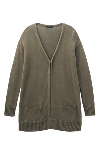 ロングニットで縦ラインをマークしてスラリとした着こなしを。ざっくり感のある綿×麻の涼しげな一着。ルーズにさらりとはおるのが大人流♪夏の冷房対策としても重宝します。産後は、フロントのスナップを留めれば授乳ケープとしても使えて便利。
