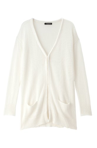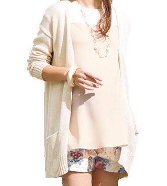 ロングニットで縦ラインをマークしてスラリとした着こなしを。ざっくり感のある綿×麻の涼しげな一着。ルーズにさらりとはおるのが大人流♪夏の冷房対策としても重宝します。産後は、フロントのスナップを留めれば授乳ケープとしても使えて便利。