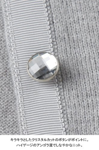 アンゴラ混のやわらかな肌触りが心地良いハイゲージのカーディガン。パンツやスカートに合わせるのはもちろん、ワンピースのはおり用アイテムとしても使える絶妙の着丈設定です。クリスタルカットのボタンや、内側に施したグログランリボンがアクセント。さり気ない袖口のパフスリーブや少し長めの袖口など、ディティールにこだわったアイテムです。