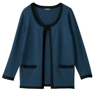 Angeliebe エンジェリーベ マタニティ 配色 ラウンド ネック カーディガン 妊婦服 羽織もの フリー ネイビー × ブラック