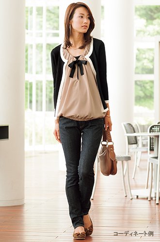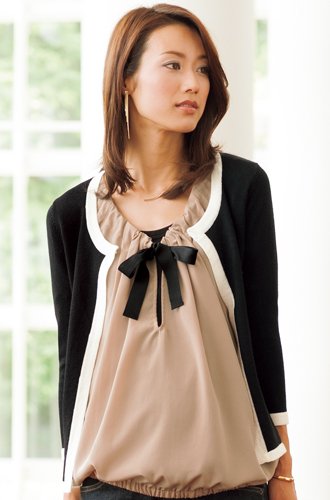 人気のバイカラーアイテム。きちんと感のあるニットカーデは、フェミニンスタイルにはもちろん、デニムと合わせたカジュアルダウンコーデ、コンサバ風のオフィススタイルにもオススメです。