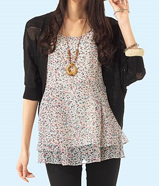 【 アウトレット 】 Angeliebe エンジェリーベ マタニティ レーシー ニット ボレロ 妊婦服 産前 産後 羽織もの 半袖 カーディガン フリー ブラック