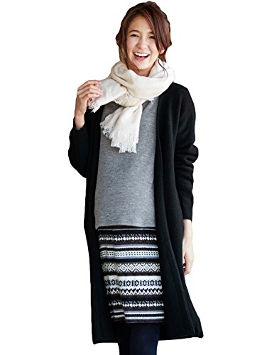Angeliebe エンジェリーベ マタニティ やわらか 弾力 ニット ロング コーディガン 妊婦服 産前 産後 カーディガン 長袖 フリー ブラック 21647 21647200