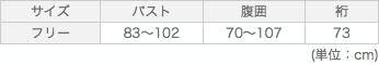 - ●サイズフリー:着丈64㎝、バスト83~102㎝、腹囲70~107㎝、裄73㎝