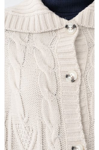 - ●前=ボタン全開、衿~前立て~裾はリブ編
