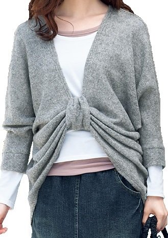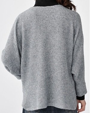 たっぷりとしたドルマンシルエットで旬をエンジョイ♪美ドレープで魅せるボレロ風スタイリング前後を逆にすれば、ボレロ風&トップスの2通りの着こなしが楽しめる重宝アイテム。ふわふわっとエアリーな軽さと暖かさで、レイヤードに手放せません。
