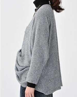 たっぷりとしたドルマンシルエットで旬をエンジョイ♪美ドレープで魅せるボレロ風スタイリング前後を逆にすれば、ボレロ風&トップスの2通りの着こなしが楽しめる重宝アイテム。ふわふわっとエアリーな軽さと暖かさで、レイヤードに手放せません。