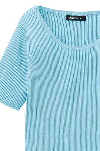 【 アウトレット 】 Angeliebe エンジェリーベ マタニティ クルー ネック リブ ニット 妊婦服 産前 産後 半袖 フリー サックス