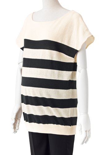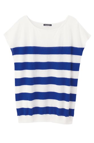 マリンルックを白でフレッシュに着こなす。麻のシャリ感と清涼感が魅力の、太いボーダーが印象的なニットです。ストンとしたシンプルなシルエットを楽しんで。広めに開いたきれいなラウンドネックが、カジュアルなニットを大人っぽく仕上げています。