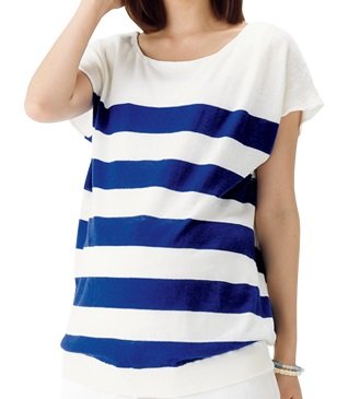 Angeliebe エンジェリーベ 綿 麻 ボーダー ニット フリー オフ × ブルー