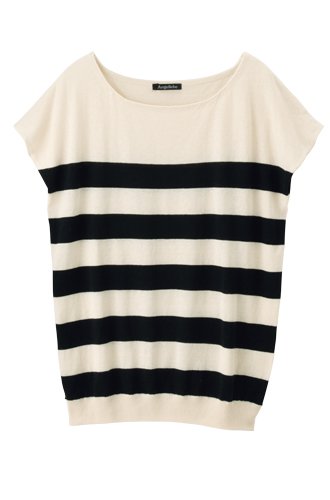 Angeliebe エンジェリーベ マタニティ 綿 麻 ボーダー ニット 妊婦服 半袖 フリー アイボリー × ブラック