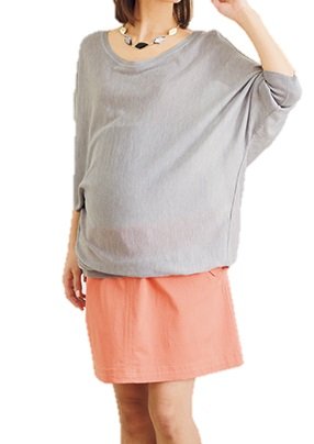 【 アウトレット 】 Angeliebe エンジェリーベ マタニティ トップス ラウンド ネック ドルマン スリーブ ニット 妊婦服 産前 産後 フリー ブルー 20284 20284200