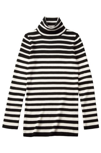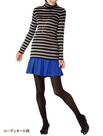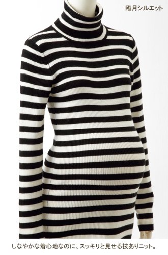 Angeliebe エンジェリーベ マタニティ トップス シルケット リブ グラデーション ボーダー タートル ネック セーター 妊婦服 ニット 長袖 フリー ブラック × オフ 白