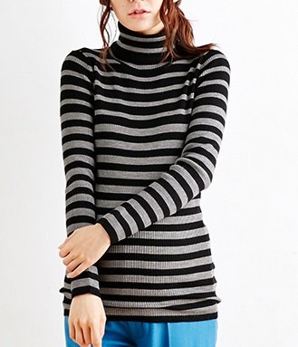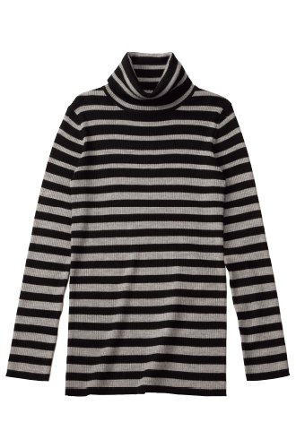 Angeliebe エンジェリーベ マタニティ トップス シルケット リブ グラデーション ボーダー タートルネック セーター 妊婦服 長袖 産前 産後 フリー ブラック × 杢 グレー 20164 20164200