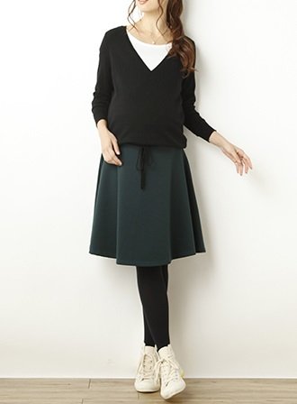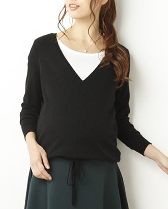 Angeliebe エンジェリーベ マタニティ カシミア 100% Vネック カシミア ニット 妊婦服 産前 長袖 フリー ブラック 20439 20439300