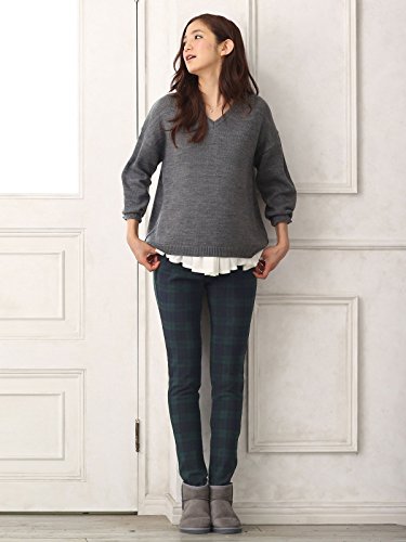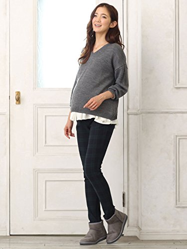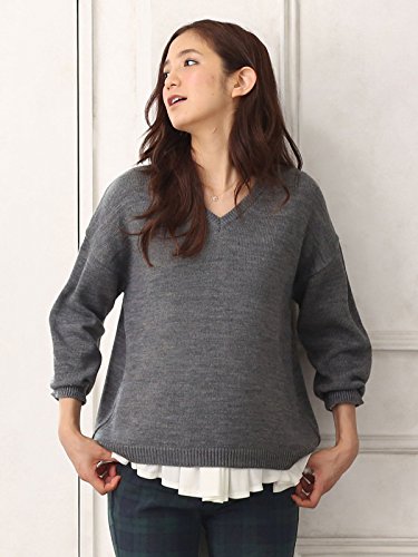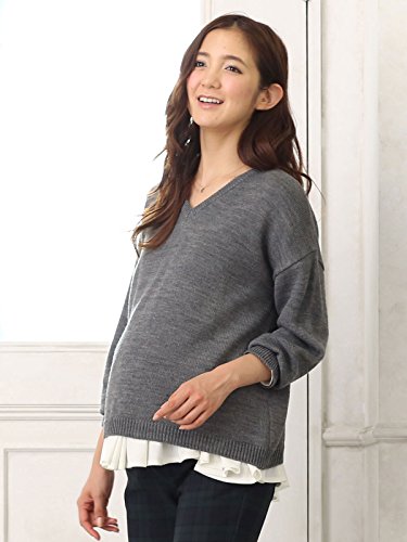 Angeliebe エンジェリーベ 日本 製 授乳 しやすい バック ふらし V ネック ニット フリー 杢 グレー