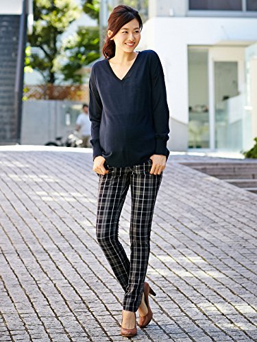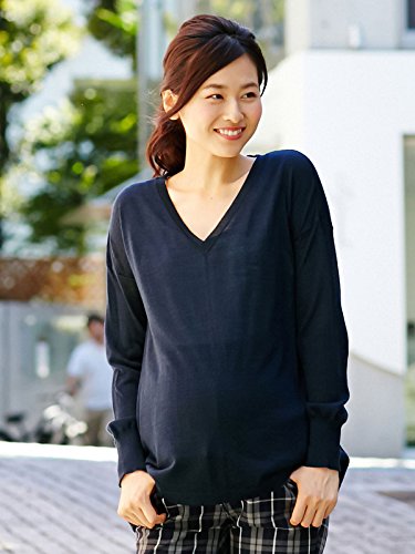 Angeliebe エンジェリーベ マタニティ トップス 授乳 しやすい やわらか ウール Vネック チュニック ニット 産前 産後 授乳服 フリー ネイビー