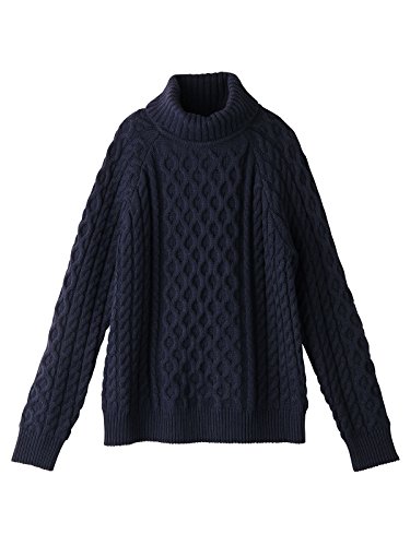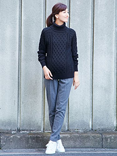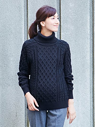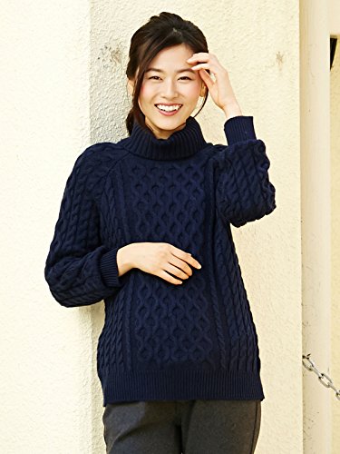 Angeliebe エンジェリーベ マタニティ トップス ケーブル 柄 タートル ネック ニット 妊婦服 産前 産後 セーター フリー ネイビー